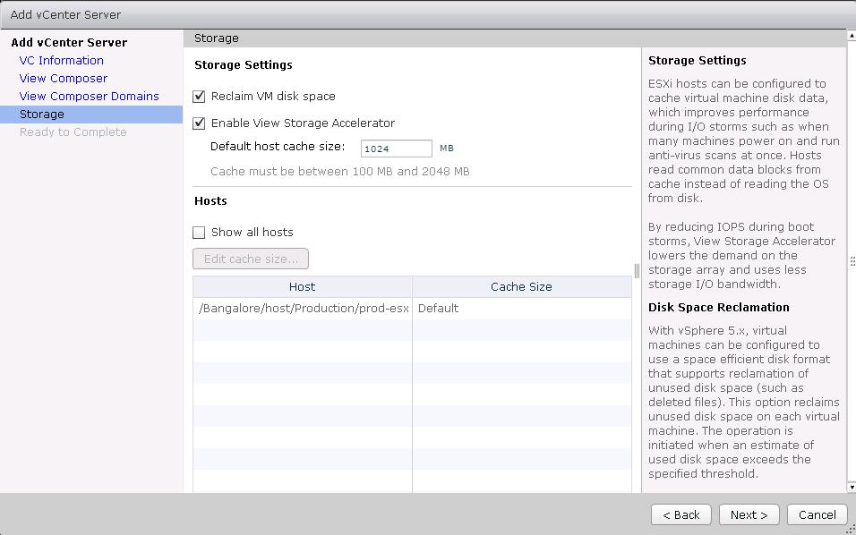 Select the Reclaim VM disk space and View Storage Accelerator under storage settings and click on Next.