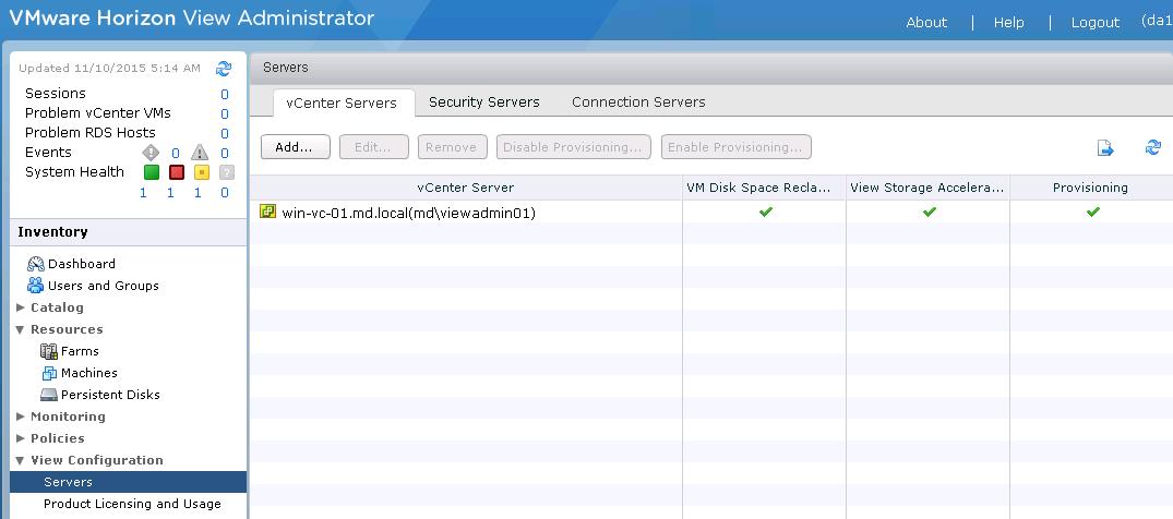 Configuring VMware Horizon View Administrartor – Virtual Desktop Infrastructure