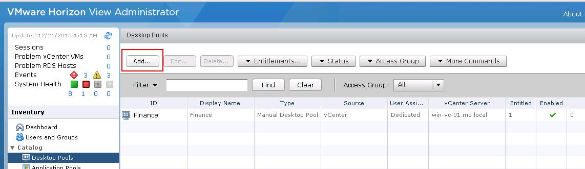 Configuring VMware Horizon View Administrartor – Virtual Desktop Infrastructure