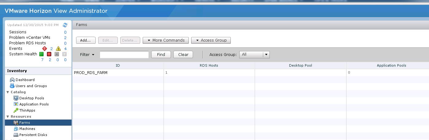 Once you created the Farm, you will be able to see the created Farm under Forms in VMware Horizon View administrator console.