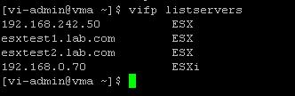 3. Make sure Added ESXi server is visible to manage under VMA. My ESXi server 192.168.0.70 is visible under the list of servers in VMA.