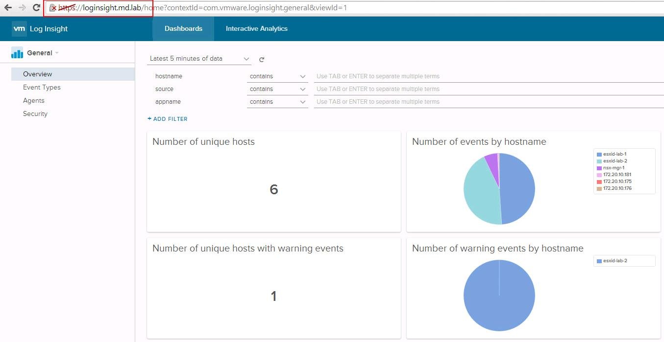 Once logged into the Log Insight using Virtual IP address using Integrated load balancer FQDN. You will be able to see the logs and events from the Log Insight portal.