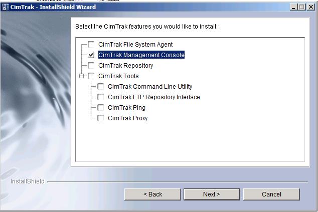 In the cimtrak features like, select “cimtrak Management” to begin the installation of cimtrak management console and click on “Next”. CIMCOR recommends installing the File System Agent, Master Repository, and Management Console on separate systems. However, it is also possible to install all the components on a single system