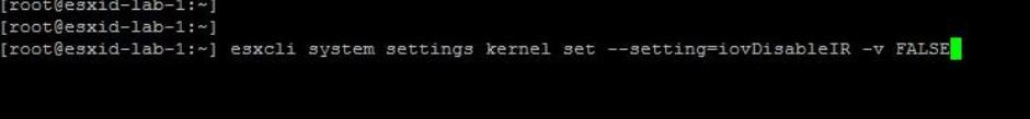 esxcli system settings kernel set --setting=iovDisableIR -v FALSE