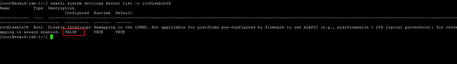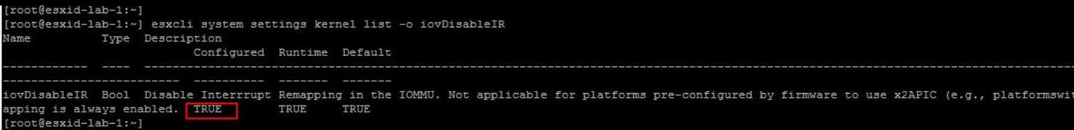 esxcli system settings kernel list -o iovDisableIR