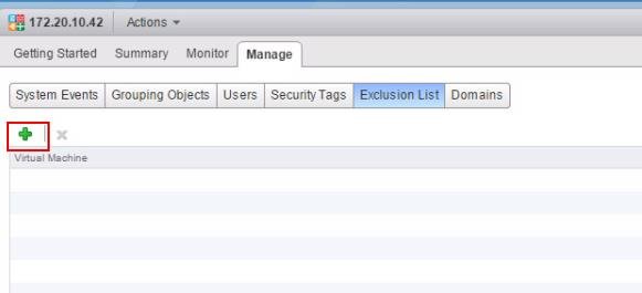 2. Click on NSX Manager ->Select NSX Manager -> Manage -> Select Exclusion Tab -> Click on “+”