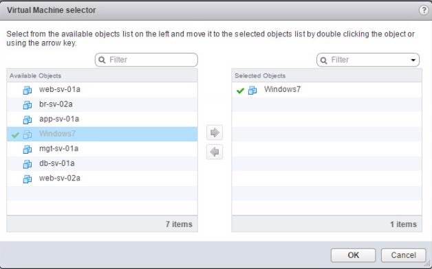 Select the Virtual Machines from the List or even you can search for the virtual machine in the Filter option. Select the Virtual Machines and move it to the selected objects. Click on OK to include the virtual machines for exclusion from NSX Distributed Firewall Protection