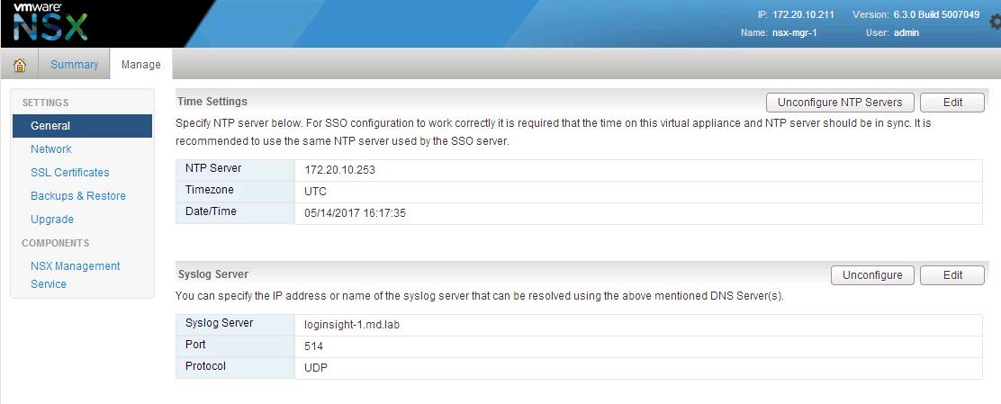 Forward NSX Manager Logs to VMware vRealize Log Insight