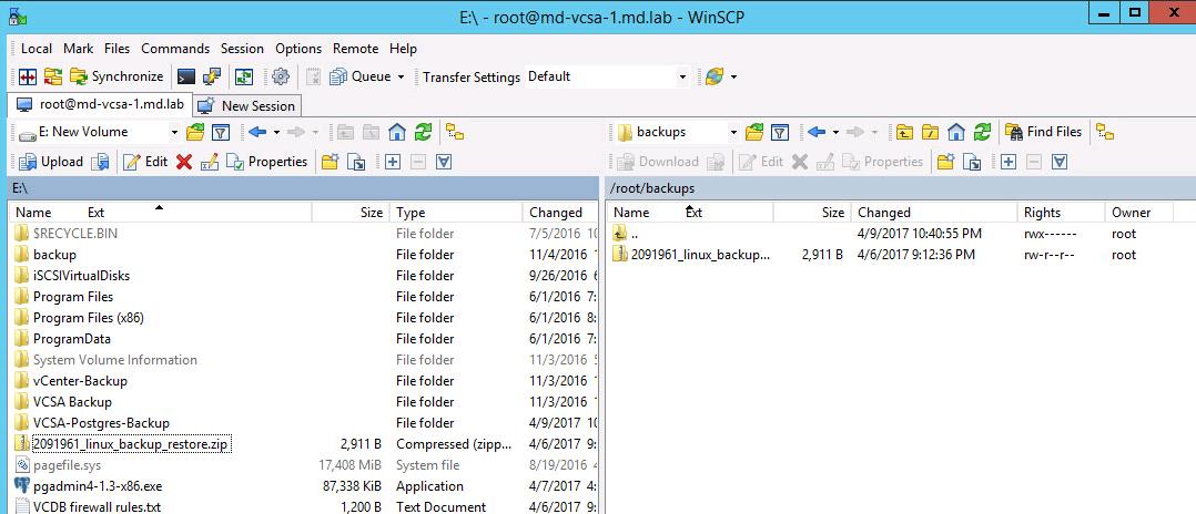 Download the python script “2091961_linux_backup_restore.zip” from VMware KB article 2091961. and copy the Zip file to the vCSA appliance using WinsCP connection to VCSA