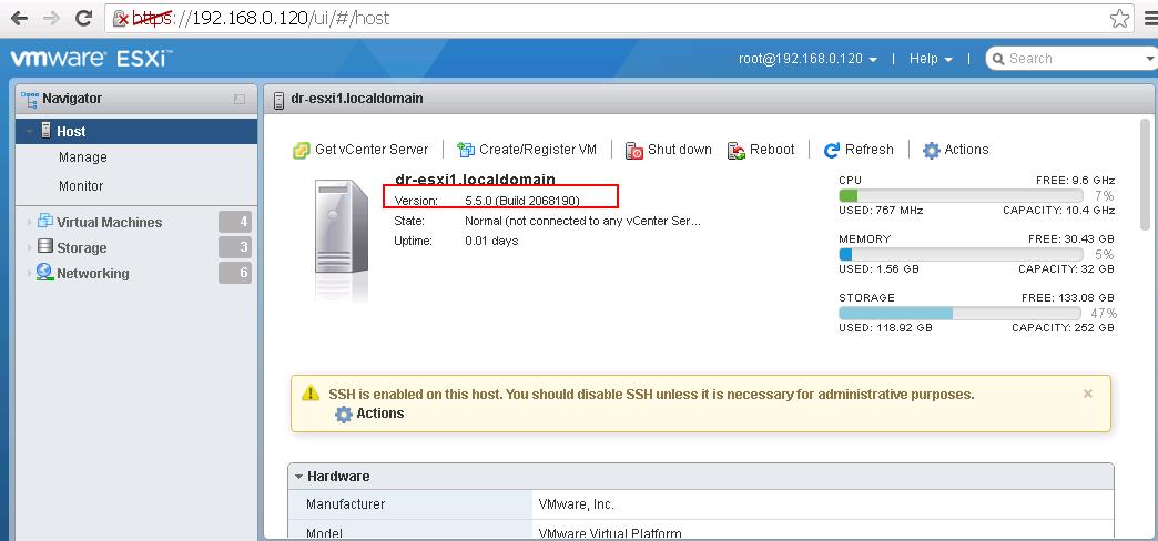To manage the ESXi host using VMware Host Client, Simply type https://<IP or Host Name of ESXi>/Ui and Login with your ESXi root Credentials. NOTE: For ESXi 5.5U2 and prior, and ESXi 6.0 hosts upgraded from any 5.5U2 or prior version, you will get a 503 error returned after visiting https://ESXi_HostName_or_IP/ui/ . This is Known issue and documented in VMware Host Client instructions in VMware Fling.