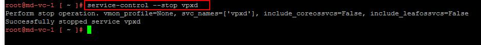 Execute the below command to stop the service. Where ServiceName corresponds to one of the services identified from the list services command in step 1. I am stopping the vpxd service (VMware vCenter Server service) in the below example.