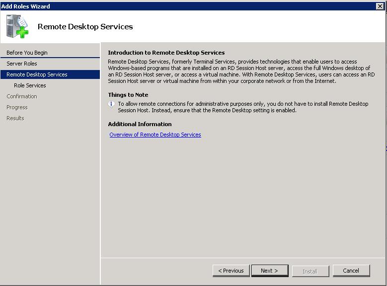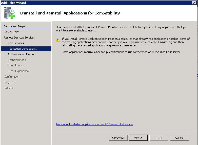 It is recommended that you install Remote desktop session host before you install any applications that you want to make available to users. Click on Next.