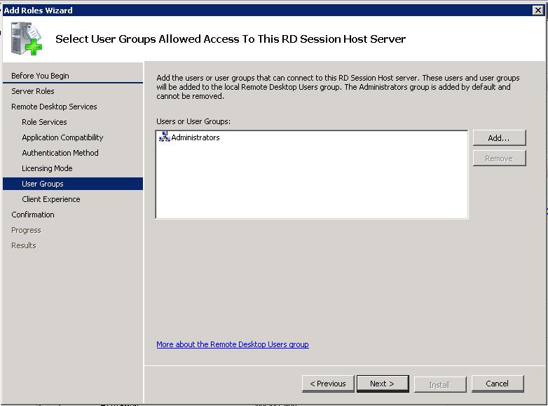 Select the Users or User group allowed access to this RD session Host server and click on Next.