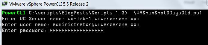 - Execute the Script in PowerCLI “.\VMSnapShot3DaysOld.ps1″