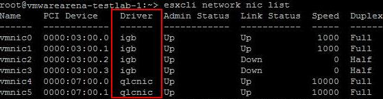 Before removing the conflicting VIB’s from the ESXi host, we need to validate that whether ESXi host are using Mellanox drivers for your network adapter or not. If it is used by ESxi host, DO NOT remove them. Removing the VIBs which are used by your network adapter will disconnect all your network interfaces from the ESXi host. You can validate the drivers used by the network adpaters using the below command