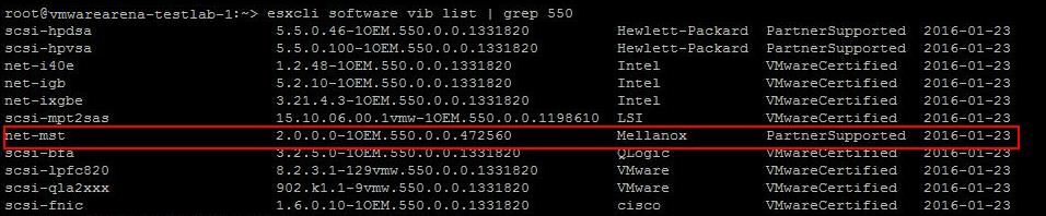 esxcli software vib list | grep Mel or esxcli software vib list | grep 550