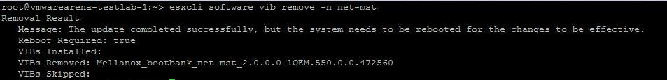 Find the VIB name from the above command. In my case, VIB name is “net-mst”. Execute the below command to remove the problematic conflicting VIB using the below command.