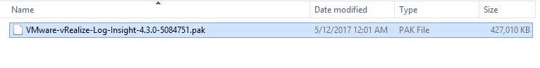 - Download the copy of vRealize Log Insight 4.3.0 upgrade bundle (.PAk file)