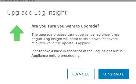 - Kindly validate the Log Insight Upgrade path to Verify that you are applying the upgrade for a supported upgrade path