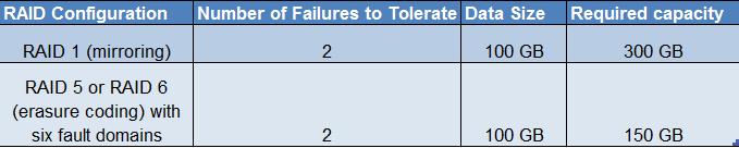 - Failure Tolerance Method = RAID 5/6 (Erasure Coding) – Capacity
