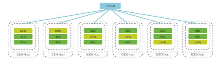 - RAID 5 or RAID 6 erasure coding is available only on all-flash disk groups.