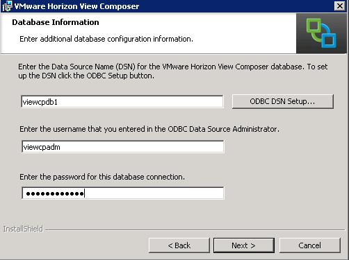 View Composer requires an SQL database to store data. The View Composer database can be reside on the server as View Composer server host or in a remote database server. You might be having exitsing Database server for your vCenter Server. View Composer supports a subset of the database servers that vCenter Server supports.You can use the same database server to create database for the View Composer or you can separate database server, if you don’t have any existing. It is always recommended to use VMware Product Interoperability Matrixes to understand the Database requirement and other interoperability between various VMware products. It is always recommended to use VMware Product Interoperability Matrixes to understand the database requirement and other interoperability between various VMware products. . The View Composer database stores all the information about linked clone virtual desktops deployed by View Composer. You need to create Create ODBC Connection before proceeding with the View Composer installation.