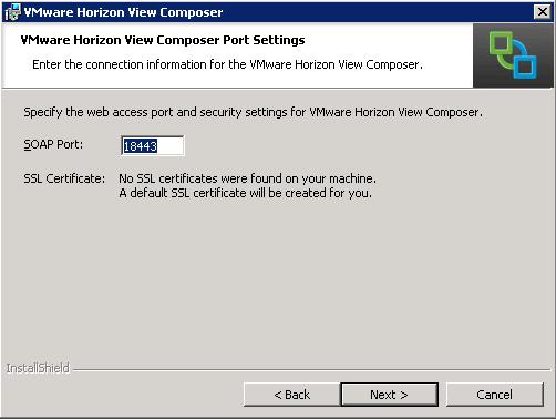Click on Next to start the installation of VMware Horizon View Composer Server.