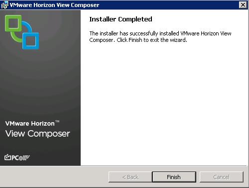 Click on Finish to complete the VMware Horizon View Composer installation.