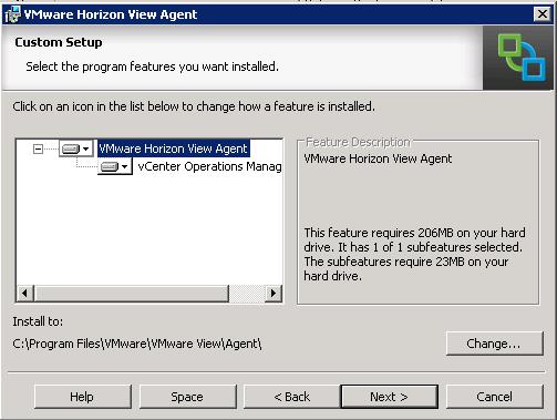 Select the VMware Horizon View Agent under the features to install and click on Next.
