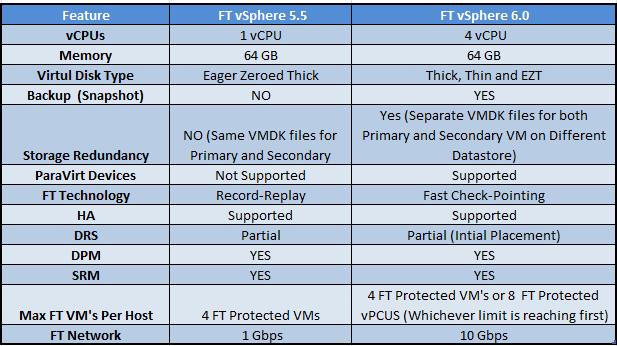 Difference between vSphere 5.5 and vSphere 6.0 Fault Tolerance (FT)