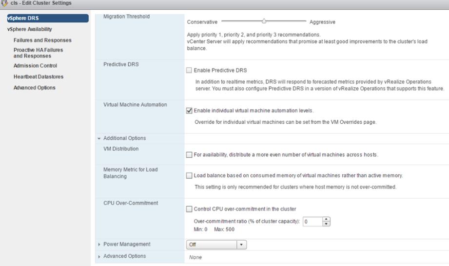 - DRS Advanced options