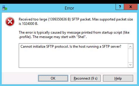 FIX : winscp connection to VCSA failed – “Received too large SFTP packet”